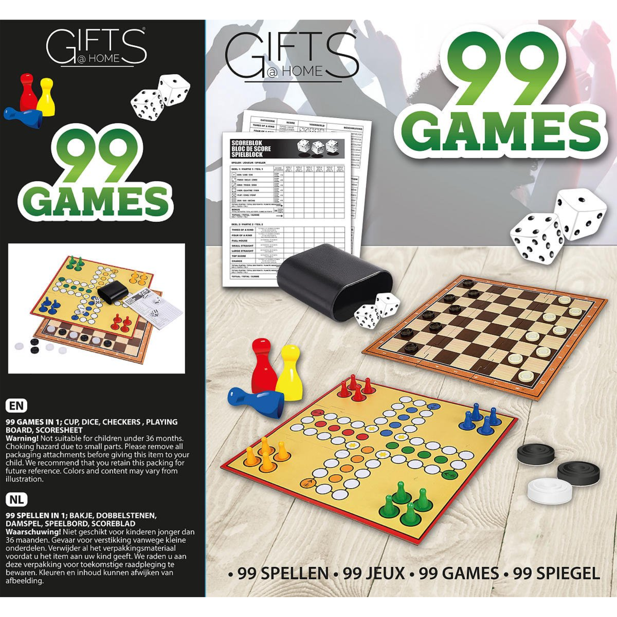 99-in-1 Spelletjes Set met Dobbelstenen, Dambord en Scoreblok